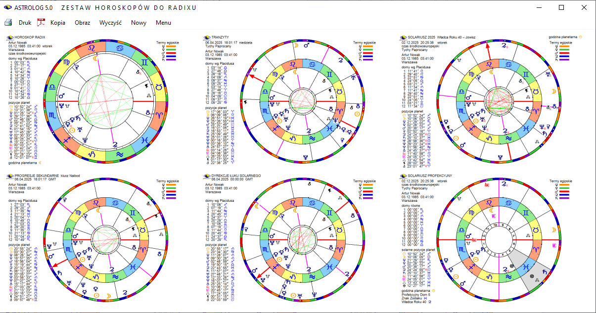 - Wykresy graficzne tranzytów, progresji i dyrekcji do radixu
