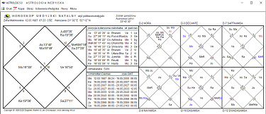 Horoskop wedyjski z diagramami podziałowymi Divisional przedstawiono poniżej, jeden w stylu