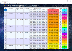 Nakshatry Księżyca wykreślane są w tabeli w okresie jednego miesiąca. Przykładowe nakshatry Księzyca przedstawiono poniżej.