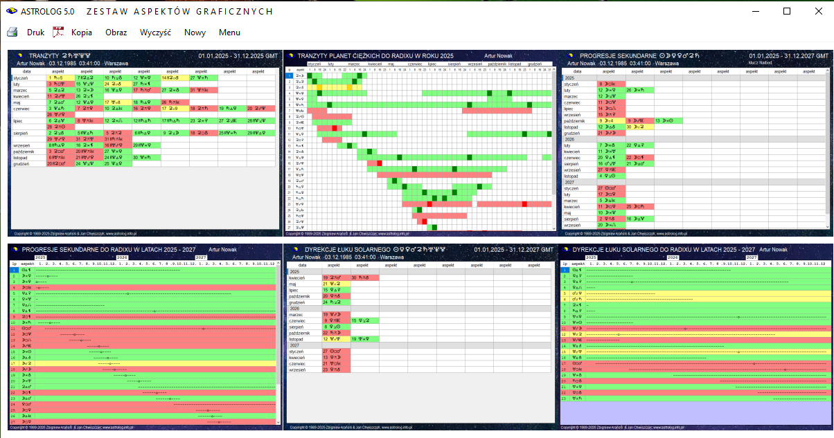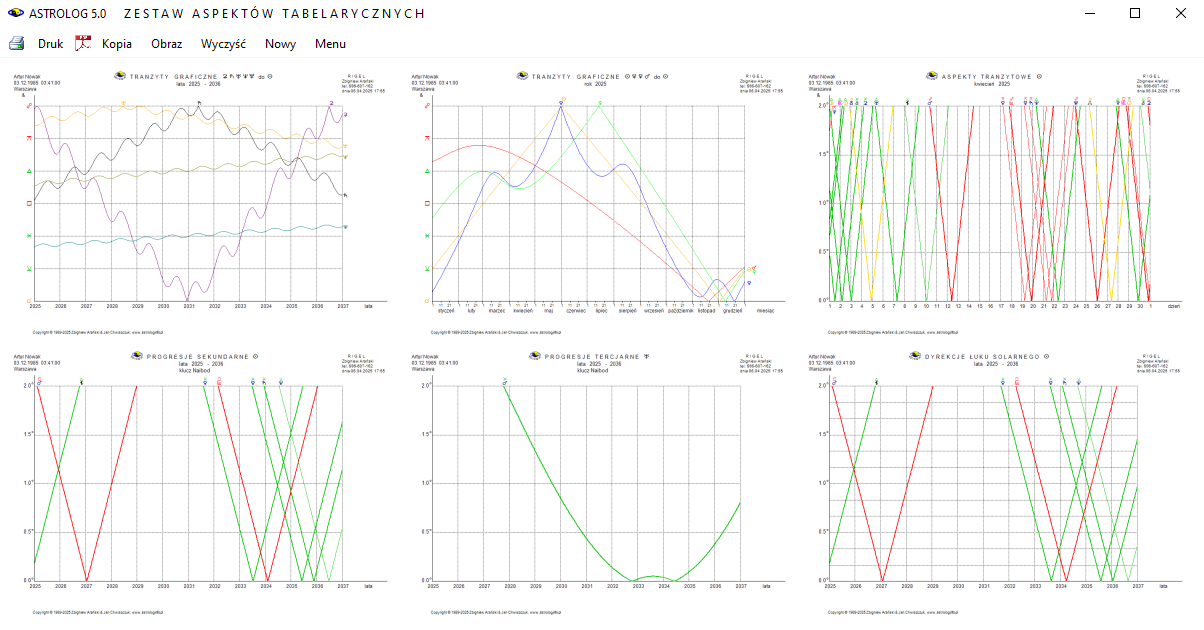 - Wykresy graficzne tranzytów, progresji i dyrekcji do radixu